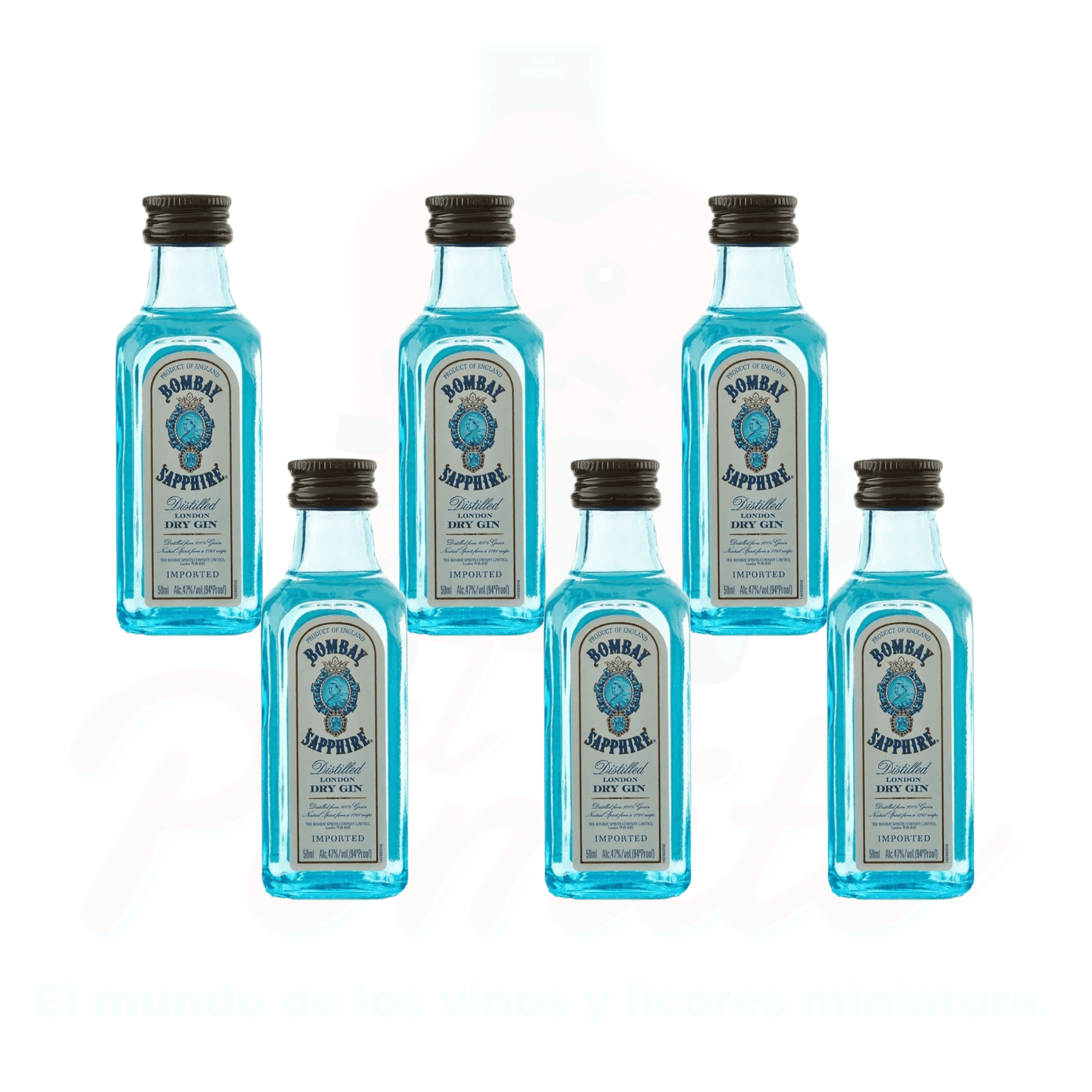 (6 Piezas) Mini Ginebra Bombay Sapphire 50 ml.