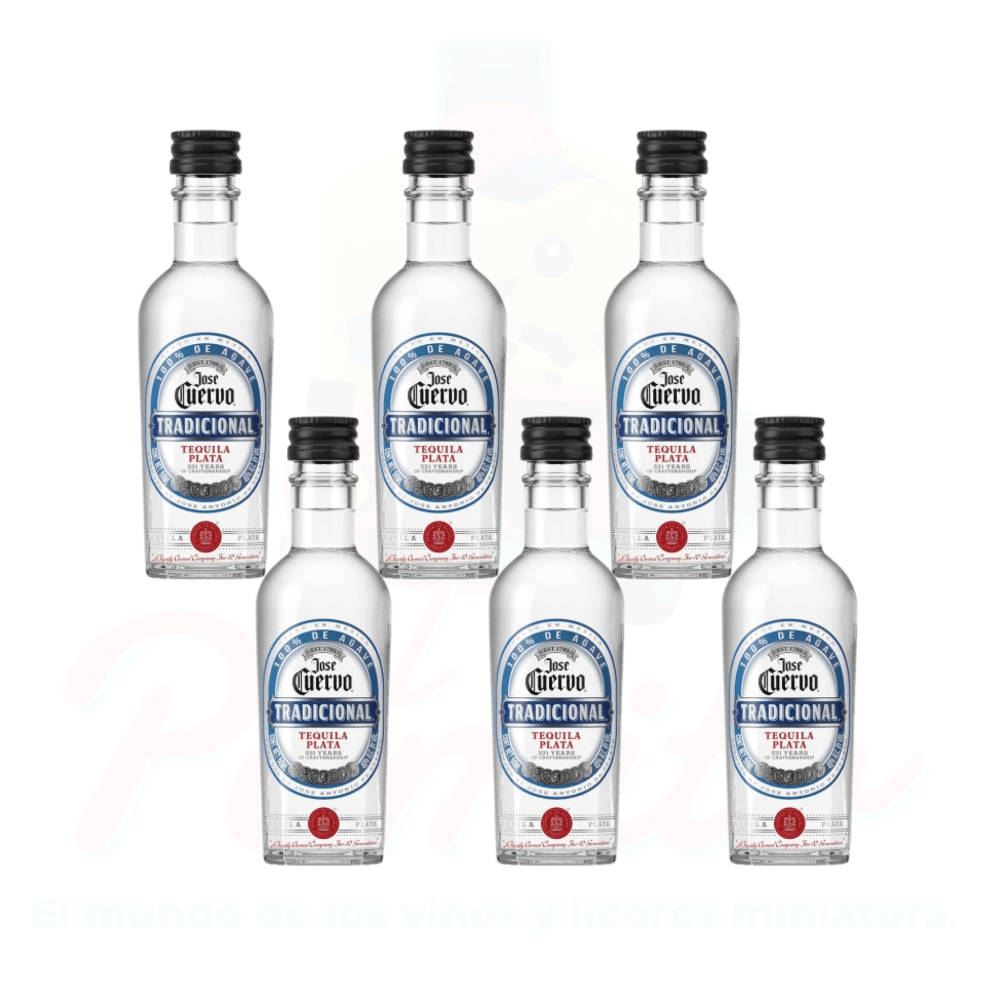 6 Piezas de Mini Tequila Jose Cuervo Tradicional Plata 50 ml. Botella de Vidrio.