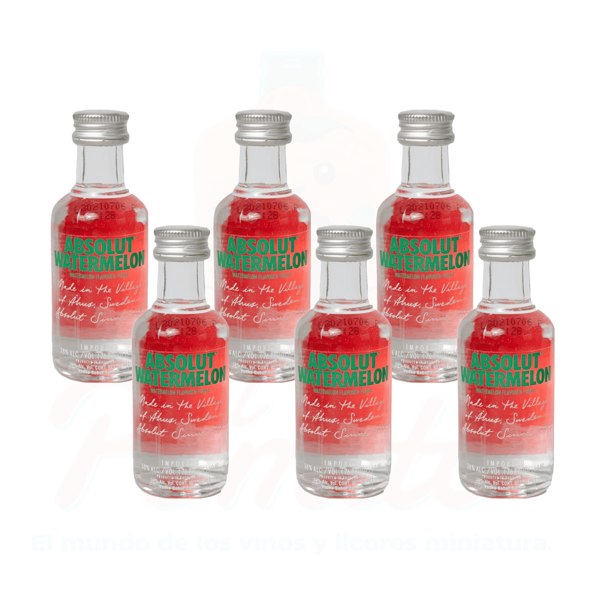 6 Piezas de Mini Vodka Absolut Watermelon 50 ml. 38% Alc. Vol. Botella de Vidrio.