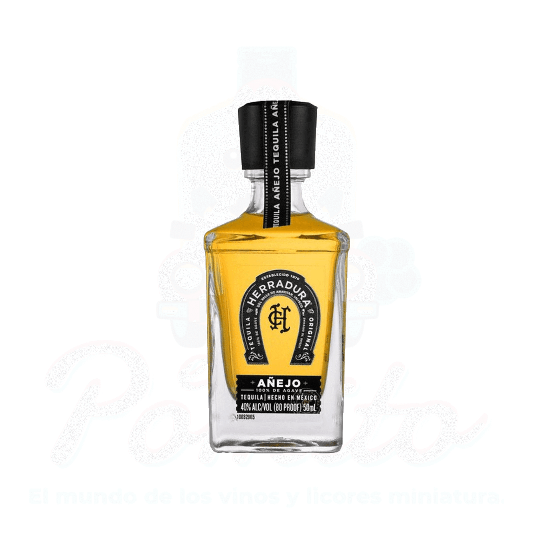 Mini Tequila Herradura Añejo 50 ml. 40% Alc. Vol. Botella de Vidrio.
